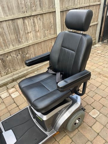 The Sterling S425 is an 8 mph (13 kph) mobility scooter with a range of up to 26 miles (42 km) on its two 55Ah batteries. It features an all-round suspension system, 12-inch wheels, and a 150 kg (23.7 stone) maximum user weight capacity. Key features include adjustable luxury seating, flip-up armrests, road-legal LED lights, and a unique “wig-wag” control system for intuitive operation.